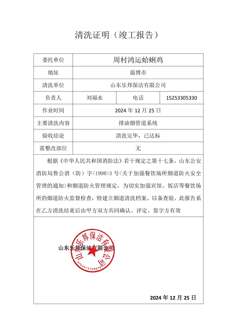 周村鸿运蛤蜊鸡清洗报告24.12.25